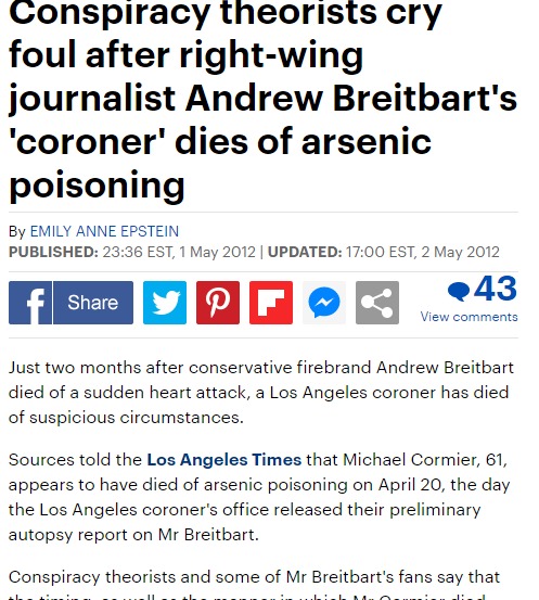 4 thoughts on “The Breitbart Coroner: Living A Conspiracy”
